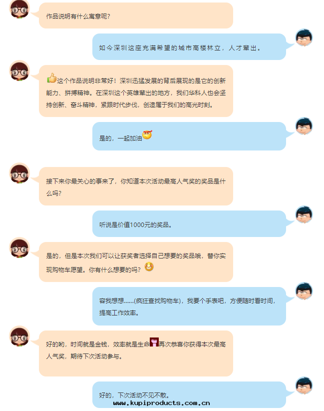 參賽者(zhě)们(men)積极(jí)參與(yǔ)活動(dòng),從不(bù)同(tóng)角(jiǎo)度(dù)創作(zuò)了(le)屬于(yú)自(zì)己的(de)“秋天(tiān)創意(yì)首SHOW”精彩作(zuò)品,在(zài)14个(gè)決賽作(zuò)品中(zhōng),12号(hào)作(zuò)品“希望之(zhī)光(guāng)”深得大(dà)家(jiā)喜歡,以(yǐ)最(zuì)高(gāo)票(piào)數荣獲最(zuì)高(gāo)人(rén)气(qì)獎。